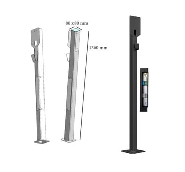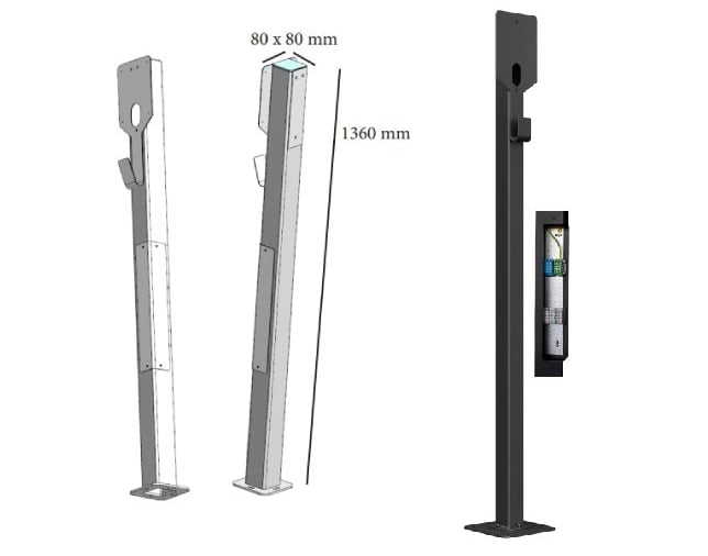S-Line serijos stovas, pagamintas iš aukštos kokybės aliuminio ir įbrėžimams atsparaus miltelinio dažymo (juoda). Integruota kabelių laikiklis patogiam ir tvarkingam įkrovimo kabelio laikymui.